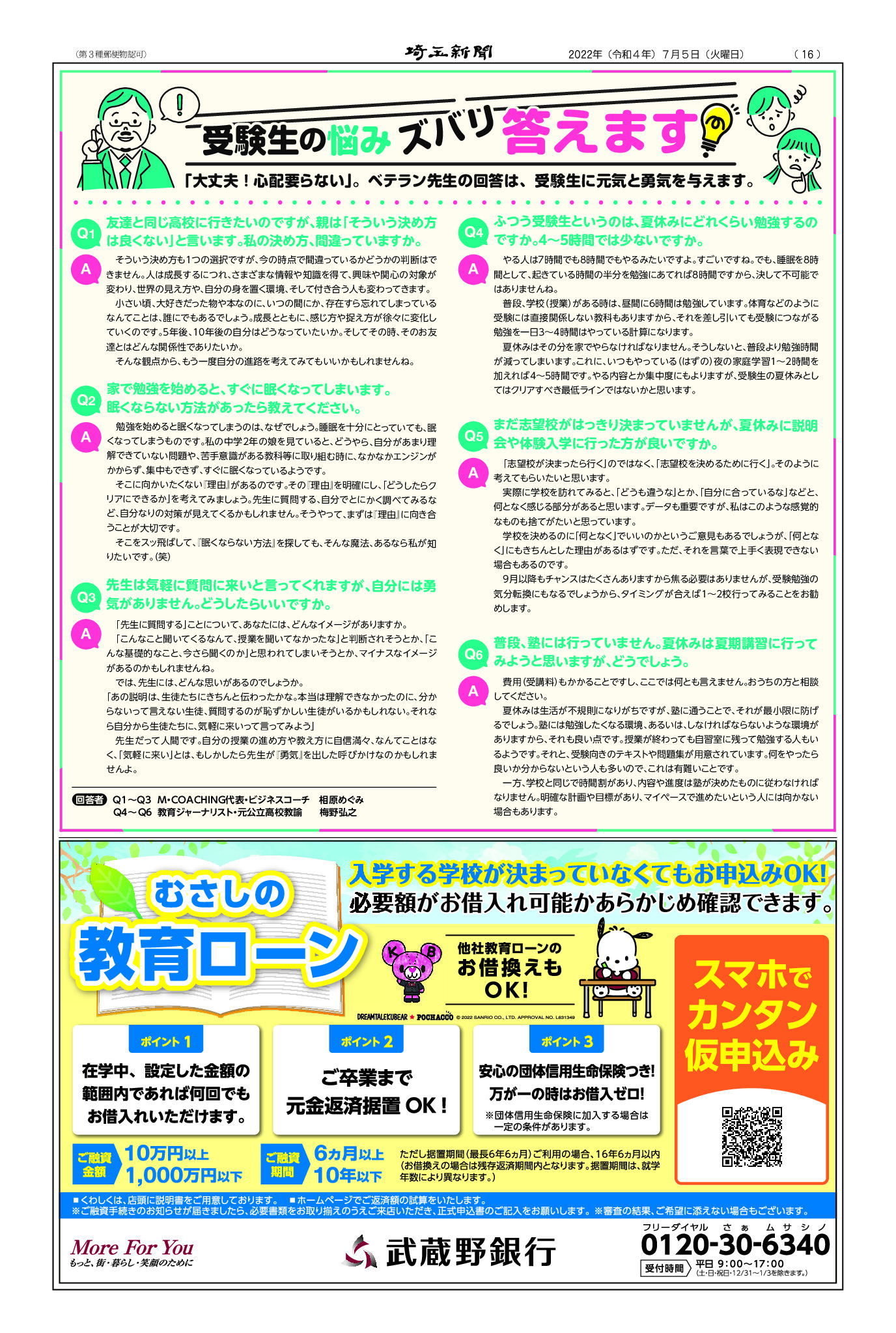 受験生の皆さんへ・埼玉新聞