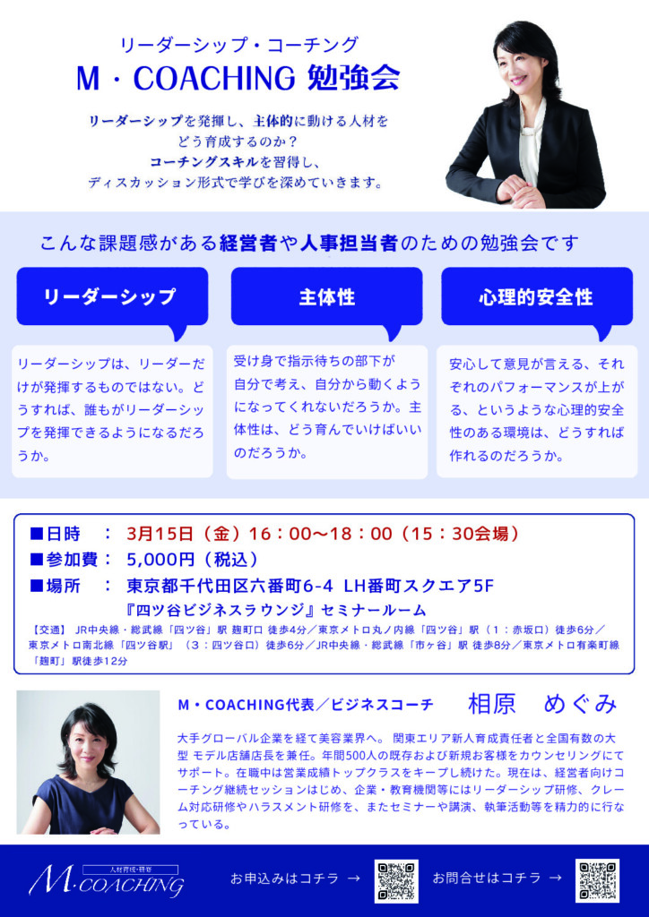 だからこそ、社員一人一人の心の状態を推しはかるために、日頃から1on1をして欲しいのです。相手の状態を決めつけるのでなく推しはかるために、コーチングスキルを習得して欲しいのです。本人ですら無意識かもしれない感情なのですから、正確に把握することはありません。気づき、見守り、意識を向けてあげる。それが『寄り添う』ということであり、会社に対する社員の心理的安全性が高まる秘訣です。