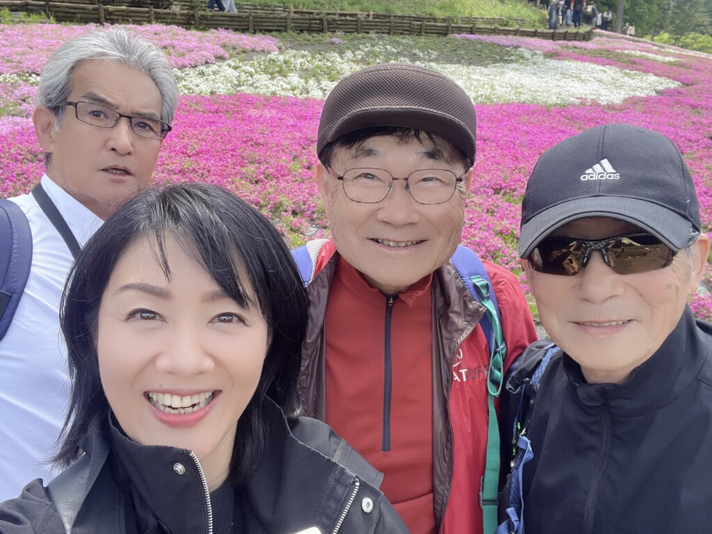 秩父に到着し芝桜の丘まで散策しながら、「皆さんで遭難して、楽しく一緒に亡くなりましょう」と冗談なのか本気なのか分からないことを満面の笑みで言っていた82歳は、幅広い年齢層からの愛されキャラです。その82歳が、企画書のようなものと真新しい名刺を用意してきており、帰りの電車の中でプレゼンを始めたのには驚きました。これから、新しいコミュニティを作るのだと言います。情報交換や人脈作りのための、世代を超えたコミュニケーションの場を提供し、ビジネスに発展させていくプラットホームにしていきたいのだと。