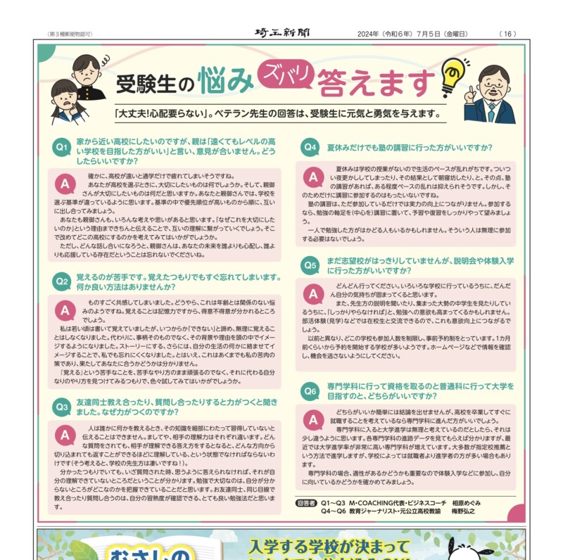 2. 埼玉新聞・受験生のお悩みにお答えしました。