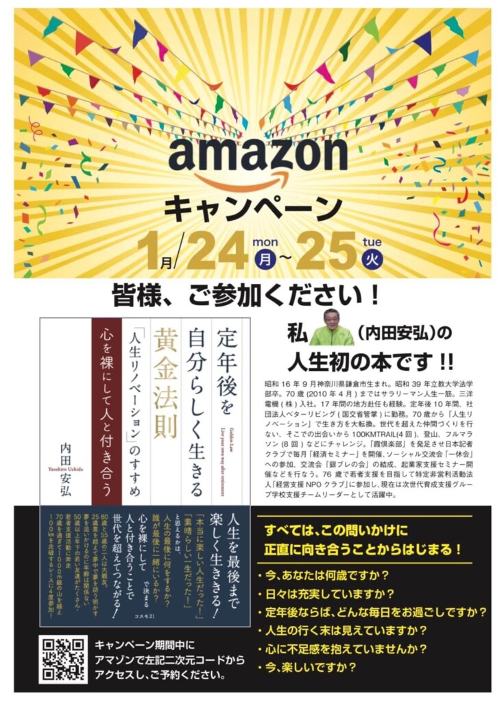 私と梅野さんを繋いでくださった、内田安弘さんが、本を出版されます。年齢問わず、誰でも惹きつけてしまう、世代間を繋げるハブ的な存在のウッチーは、いつお会いしても、とてもオシャレ☆ フルマラソンに参加しちゃったり、1人で車を運転し日帰りでスキーに行っちゃったり、パワフルな80歳!です。