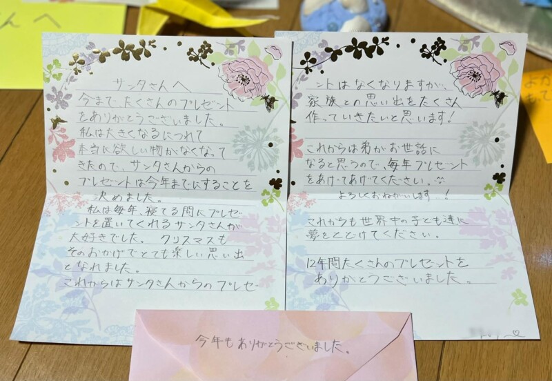 娘がサンタさんを想って書いた手紙だけど、私にはこれまでの全てが報われるようでした。またひとつ、母の宝物が増えました。