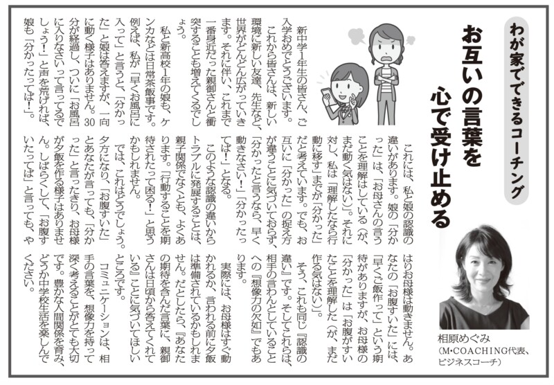 『わが家でできるコーチング』というテーマで、今年で4回目の寄稿となりました。